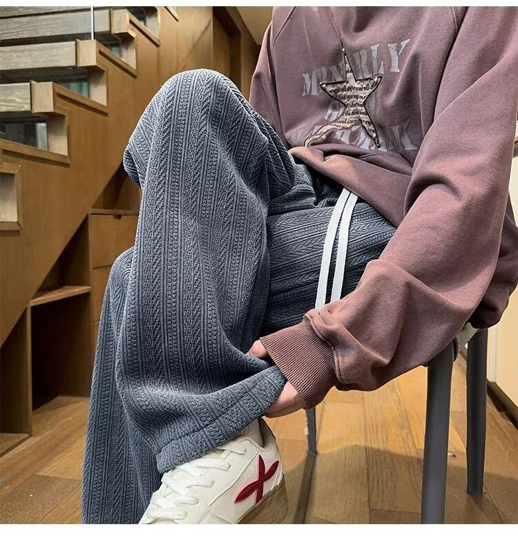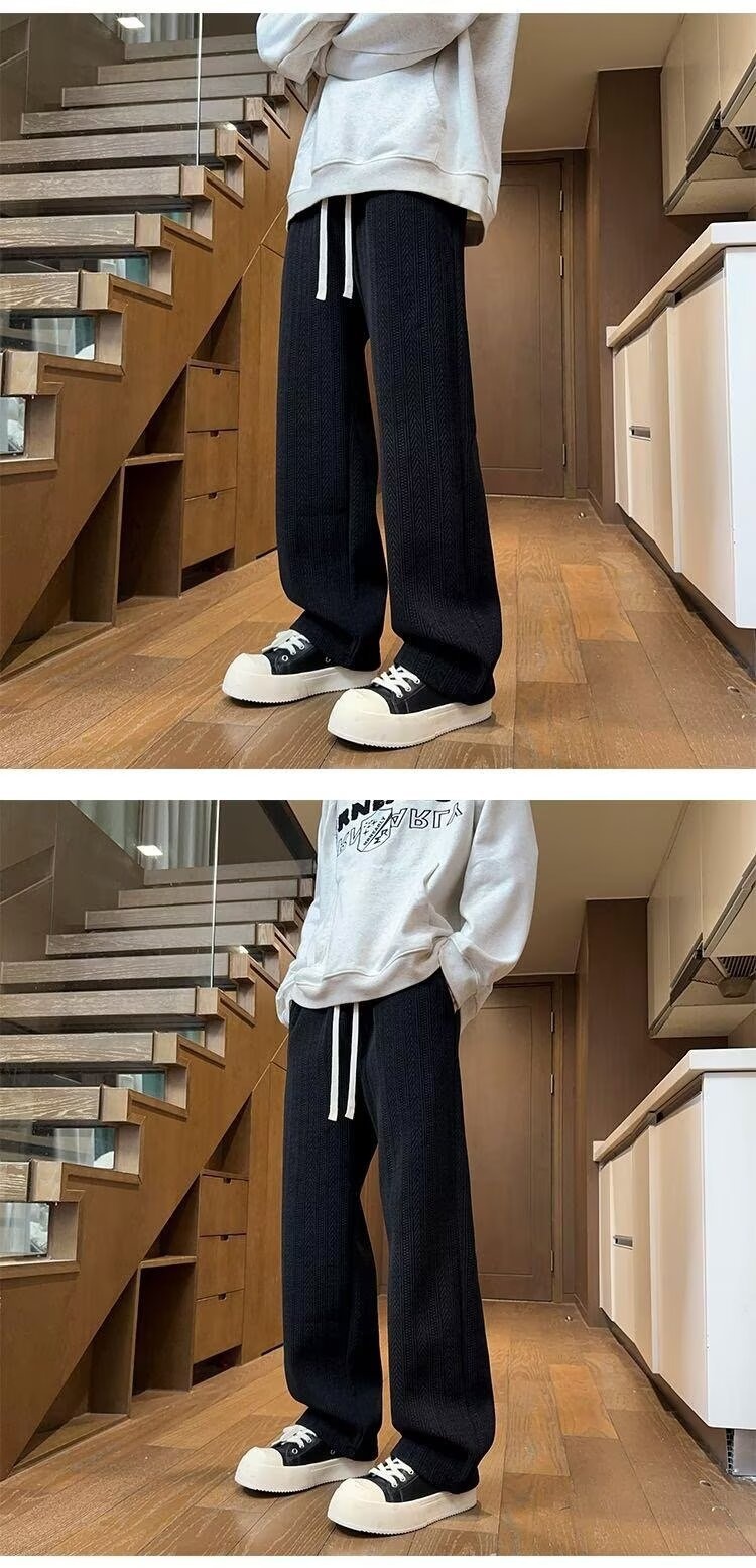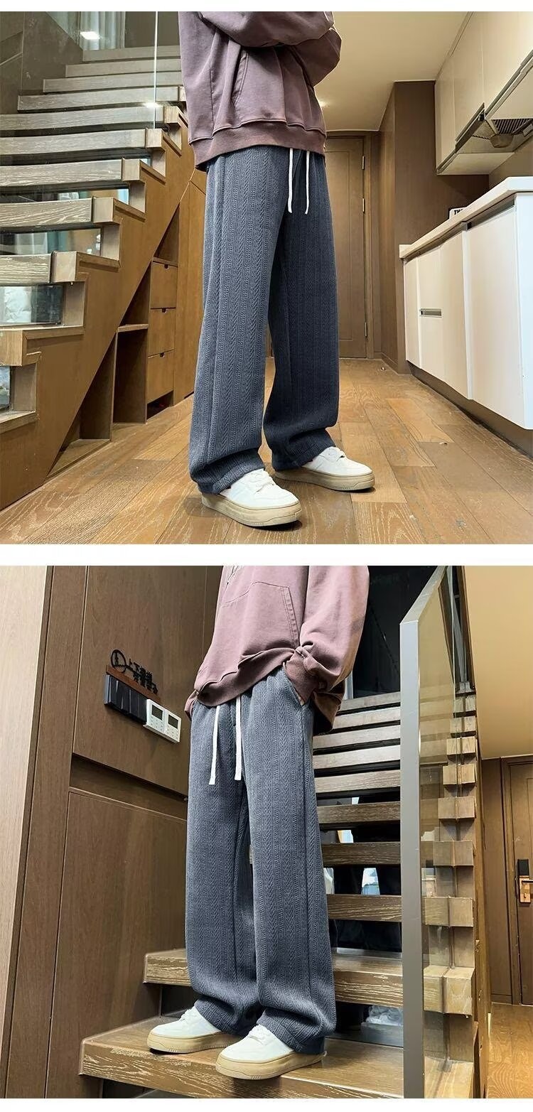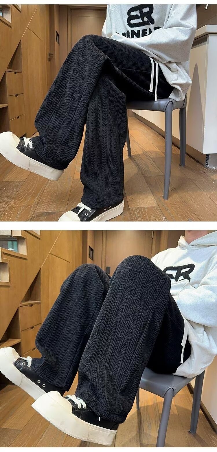 Mens Black Wheat Stripe Wide Leg Pants For FallWinter