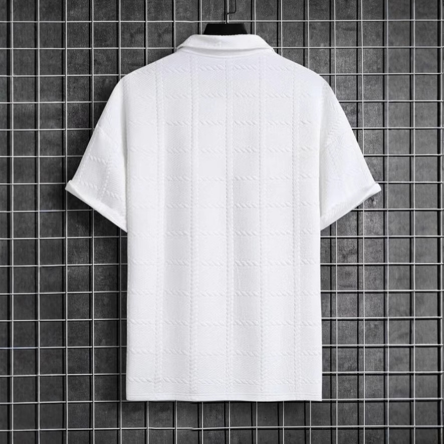 Mens Textured Short-Sleeve Polo Shirt With A Turn-Down Collar