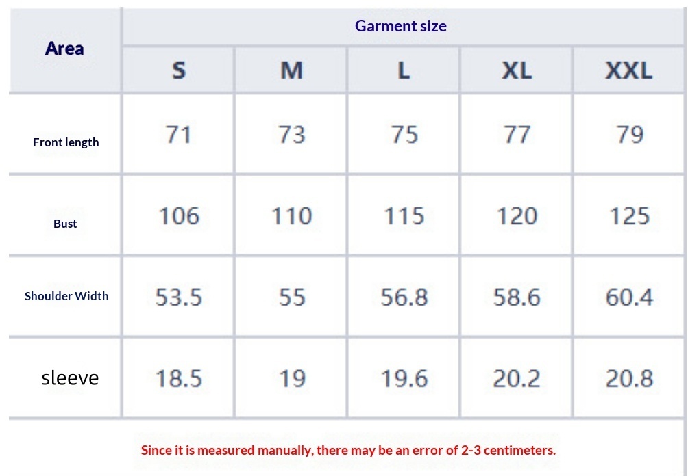 1. Asian sizes are 1 to 2 sizes smaller than European and American people. Choose the larger size if your size between two sizes. Please allow 2-3cm differences due to manual measurement. 2. Please check the size chart carefully before you buy the item, if you don't know how to choose size, please contact our customer service. 3.As you know, the different computers display colors differently, the color of the actual item may vary slightly from the following images.
