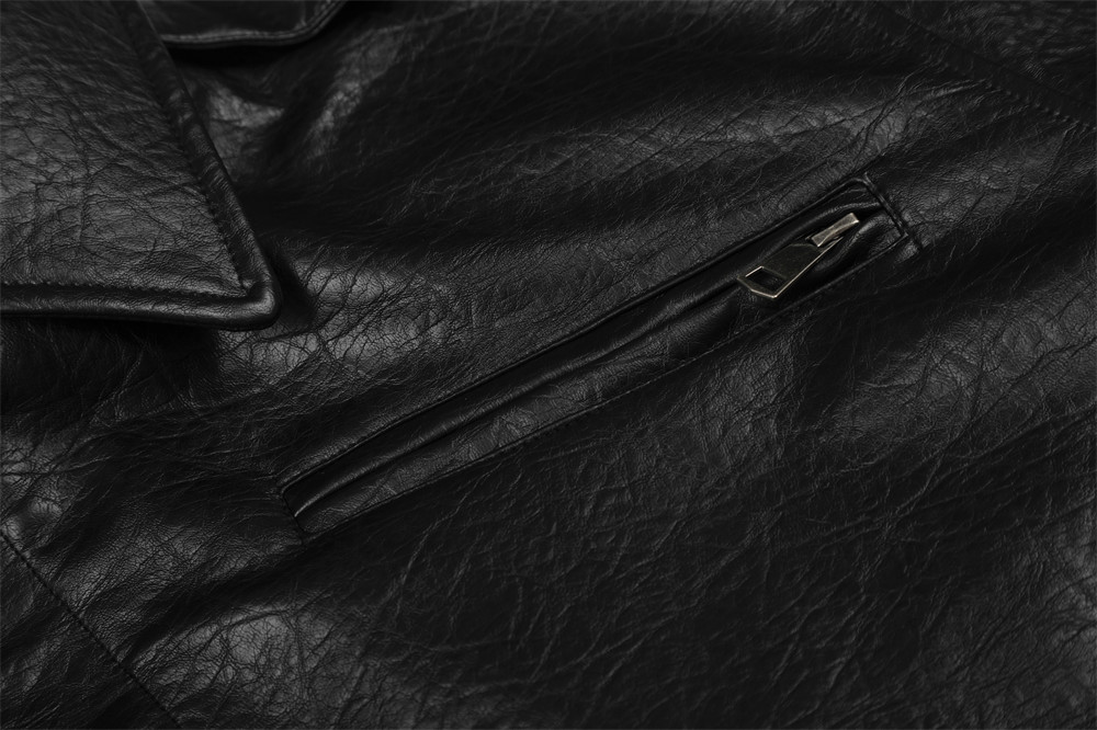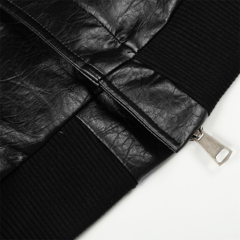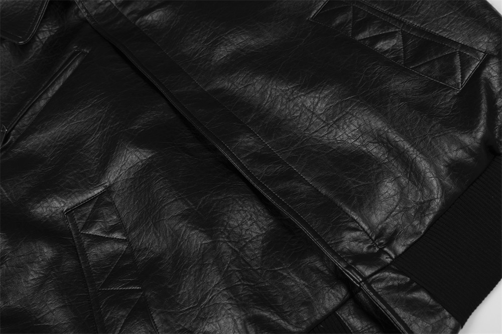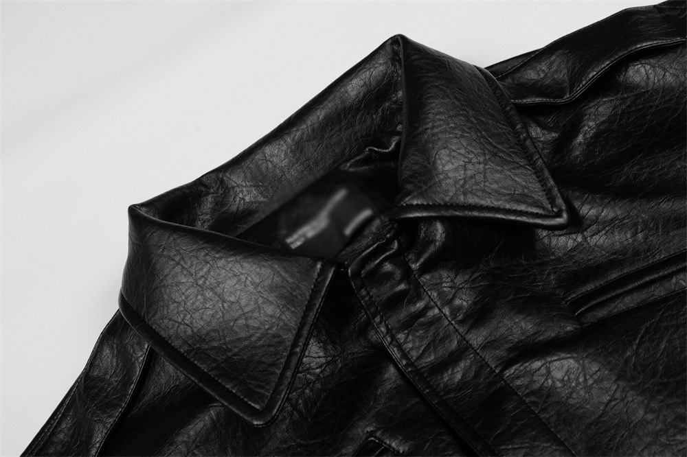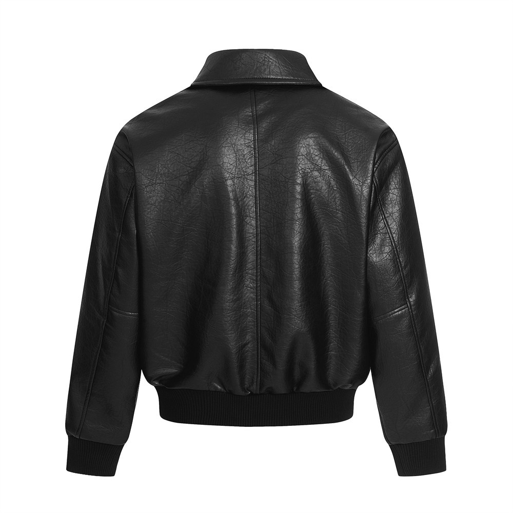 Outdoor Casual Solid-color Lapel Leather Jacket